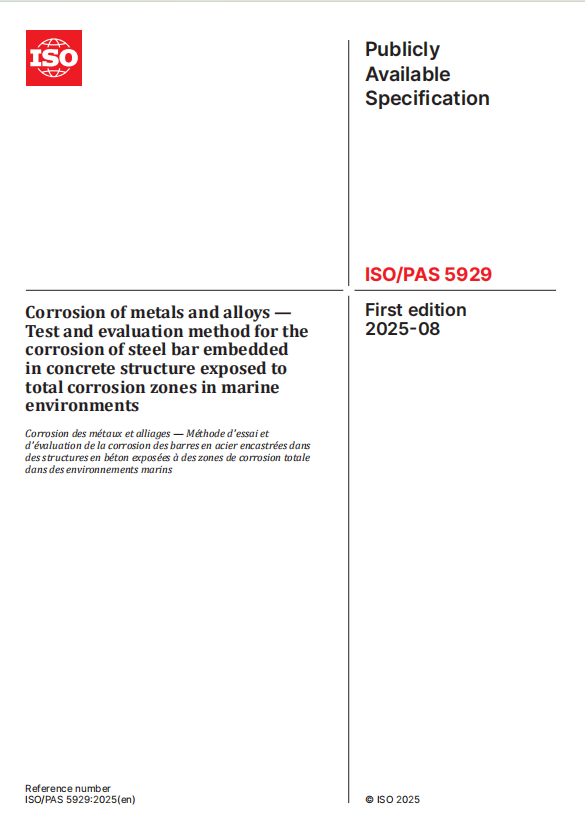 近日,由中国中冶所属中国二十冶牵头制定的一项国际标准《金属和合金腐蚀 海洋环境全腐蚀区混凝土结构中钢筋锈蚀试验及评定方法》(ISO/PAS 5929-2025)获批正式发布。